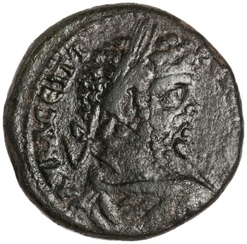 From the time of Galen (c. 129-210AD), a bronze coin (Anchialus mint) of the Roman Emperor Septimus Severus (193-211 AD) featuring Asklepios standing right and and Hygieia standing left on the reverse. Hygieia inspired Galen’s theory of hygiene. ANS 1998.13.10 American Numismatic Society